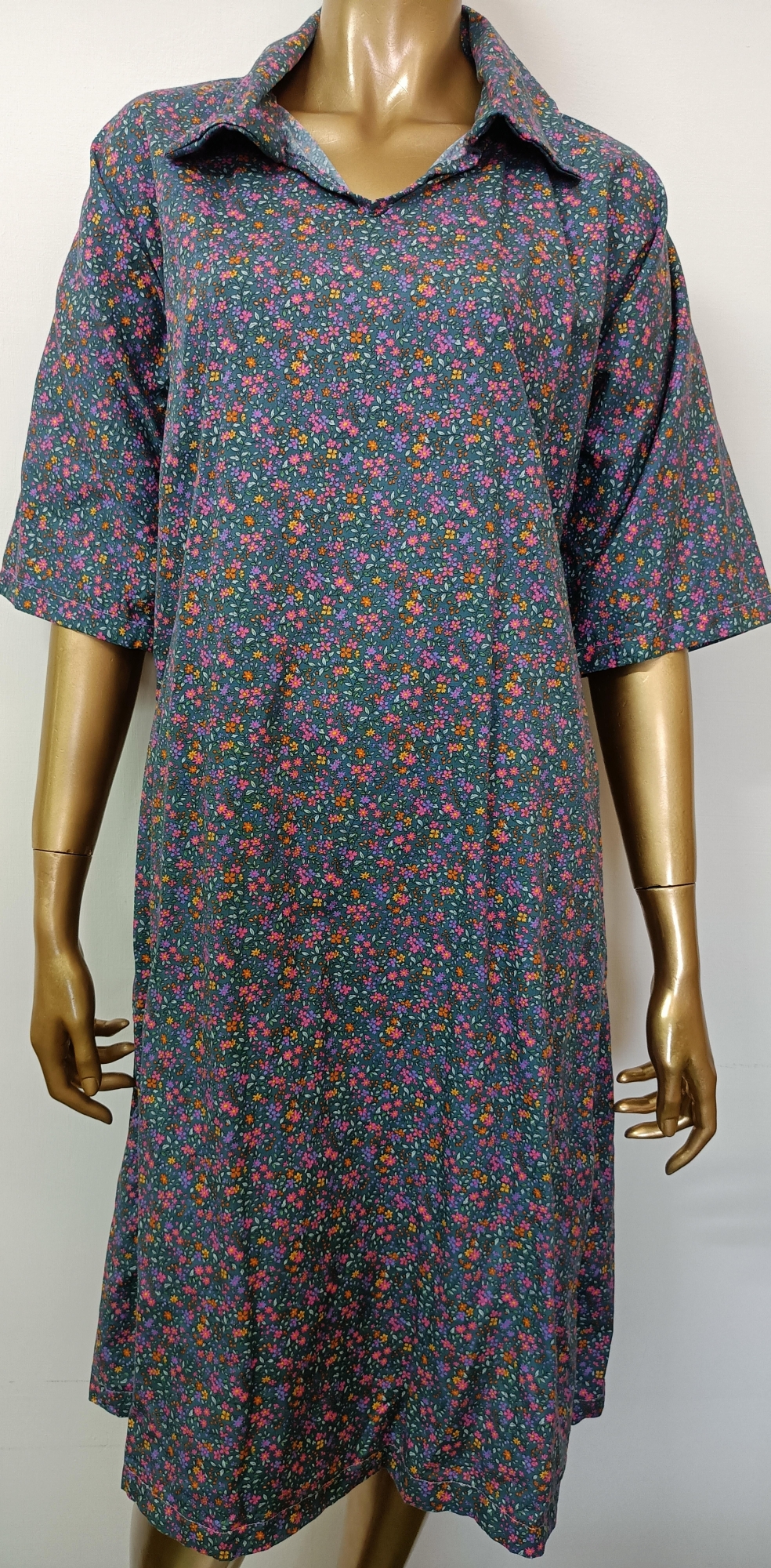 Green Flowers Gray Dress